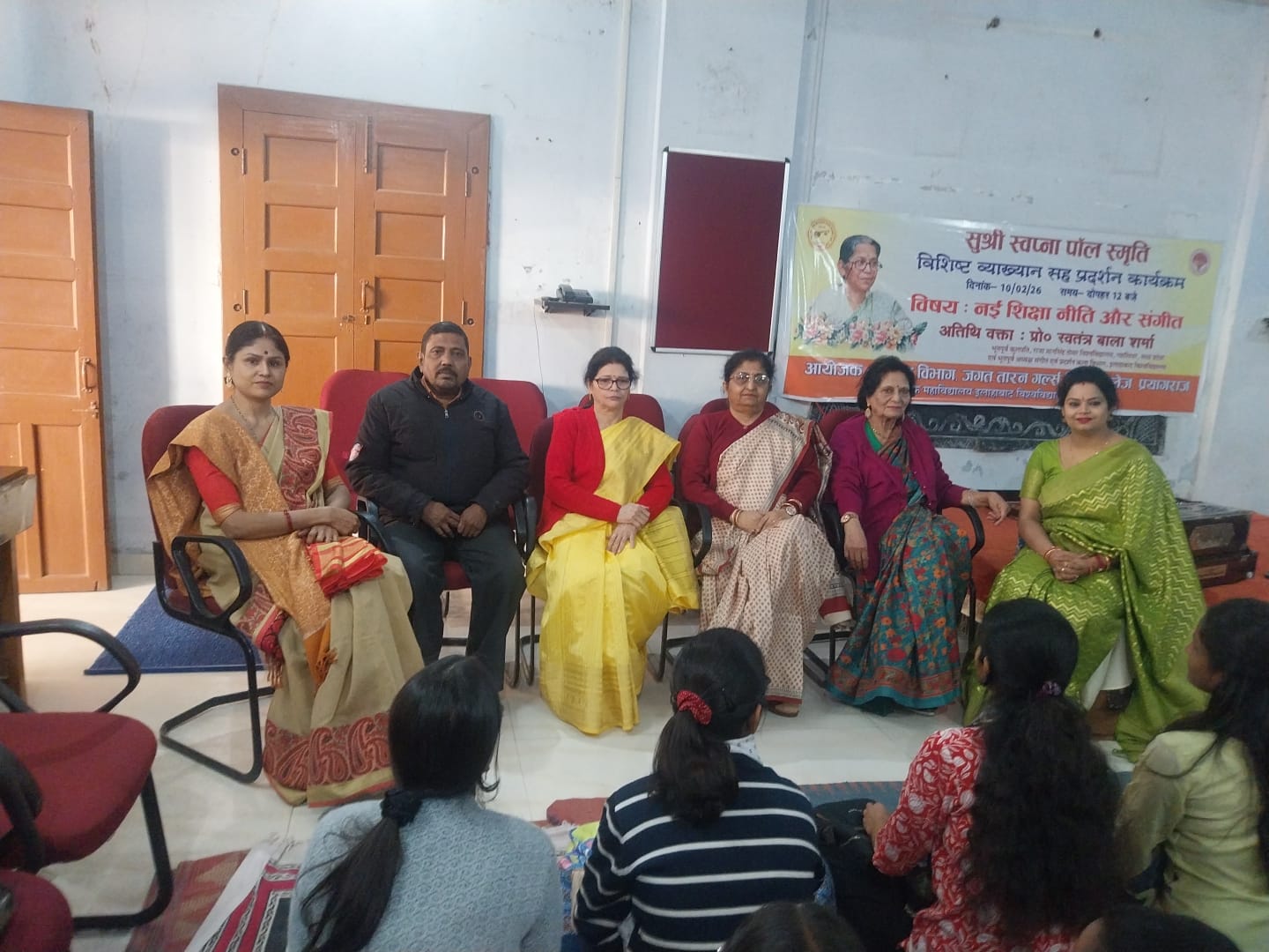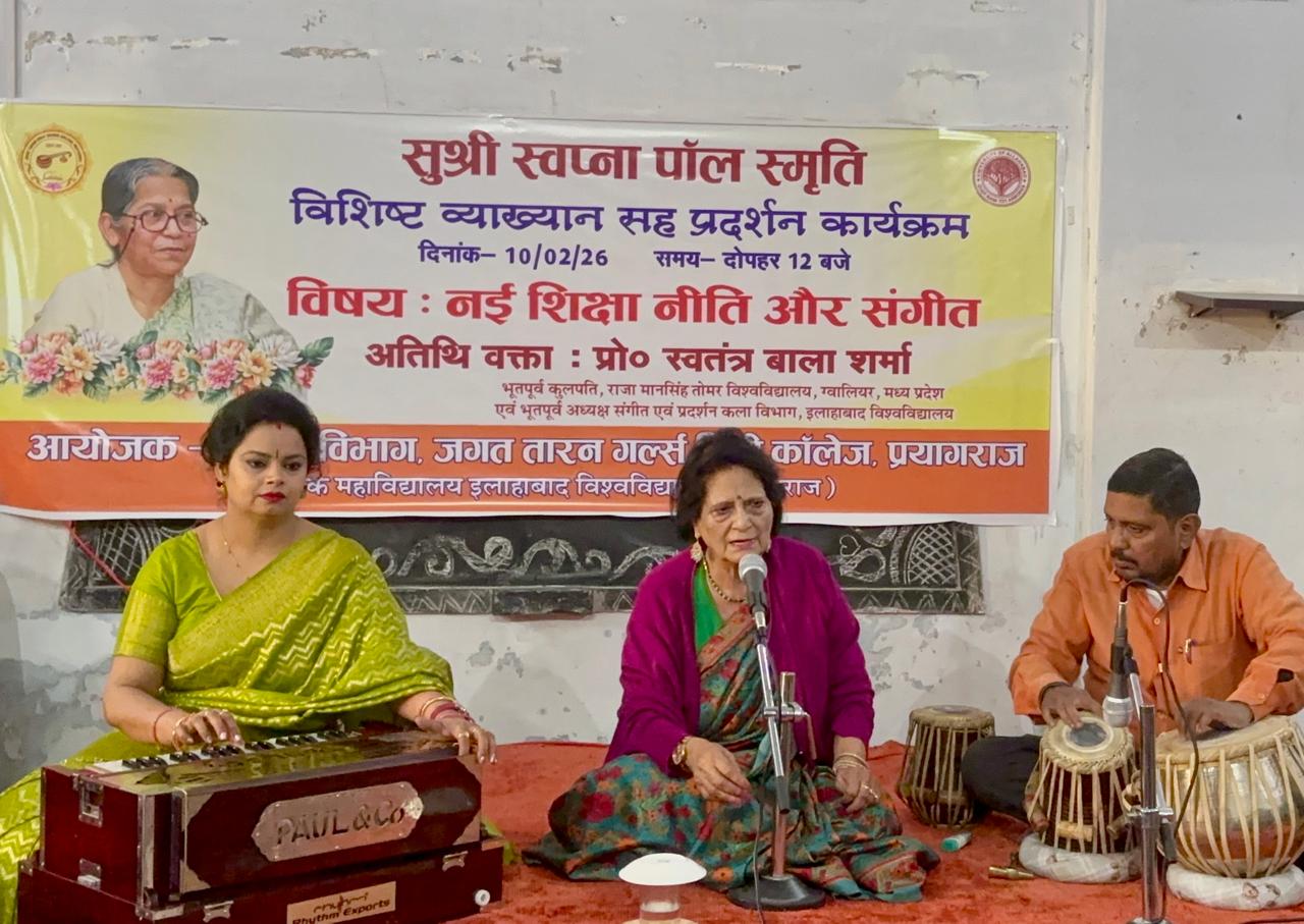 Sushri Swapna Paul Smriti Vishisht Vyakhyan sah Pradarshan (Lecture cum Demonstration) was held on 10/02/26 in the Music Department. The Resource Person was Prof. Swatantra Bala Sharma, Former Vice Chancellor Raja Mansingh Tomer University, Gwalior and Former Head if the Department, Department of Music and Performing Arts, University of Allahabad.