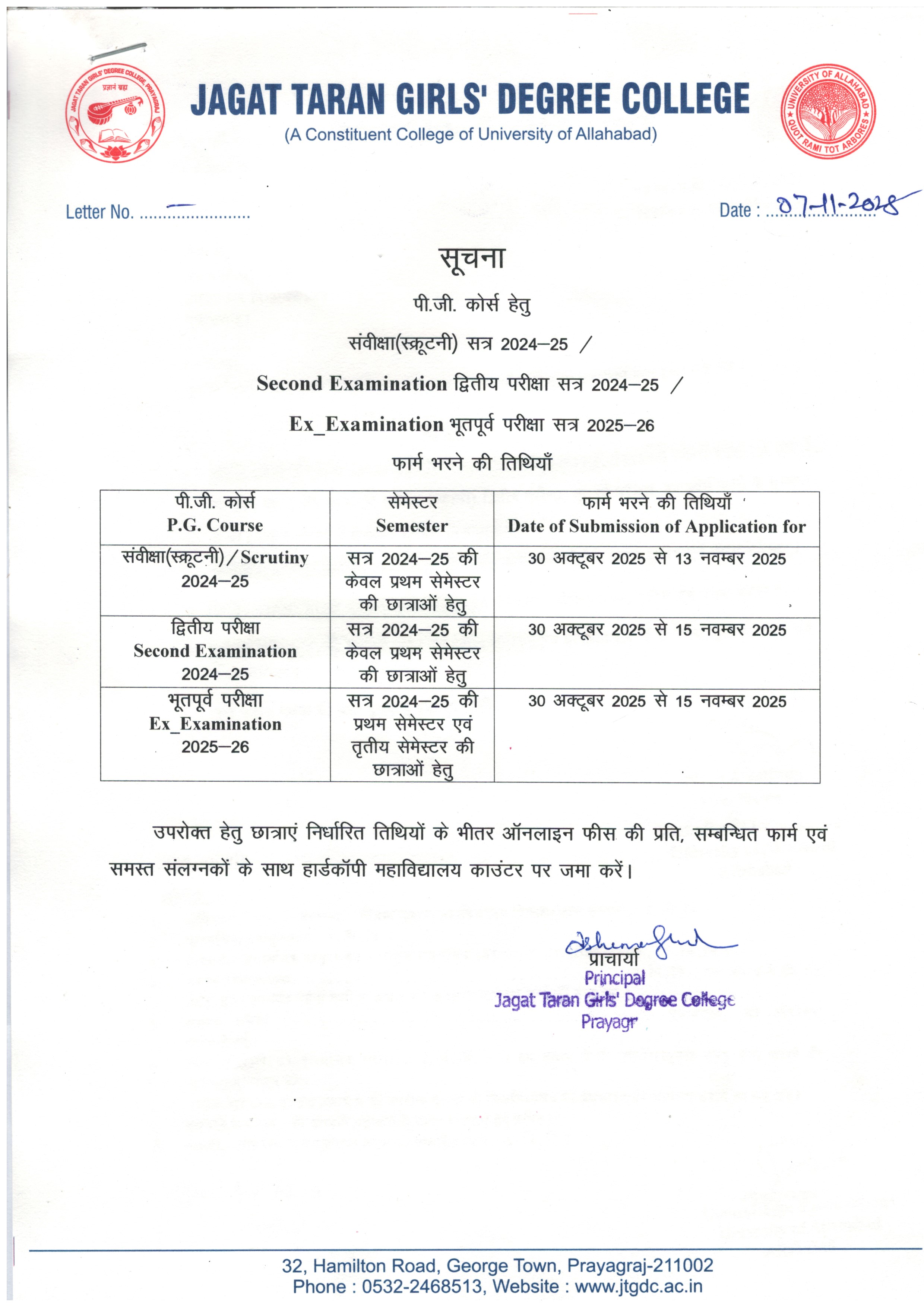 Revised PG (ECO, GEO, HIN) Scrutiny/Second Exam/Ex Student Application Form & Fee Submission