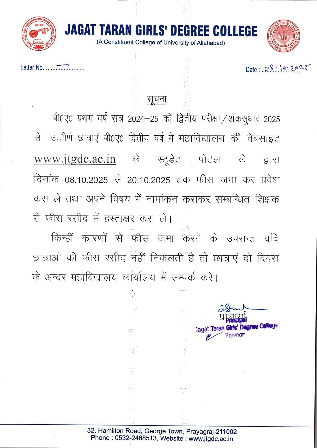 Fee submission of BA II Session 2025-26