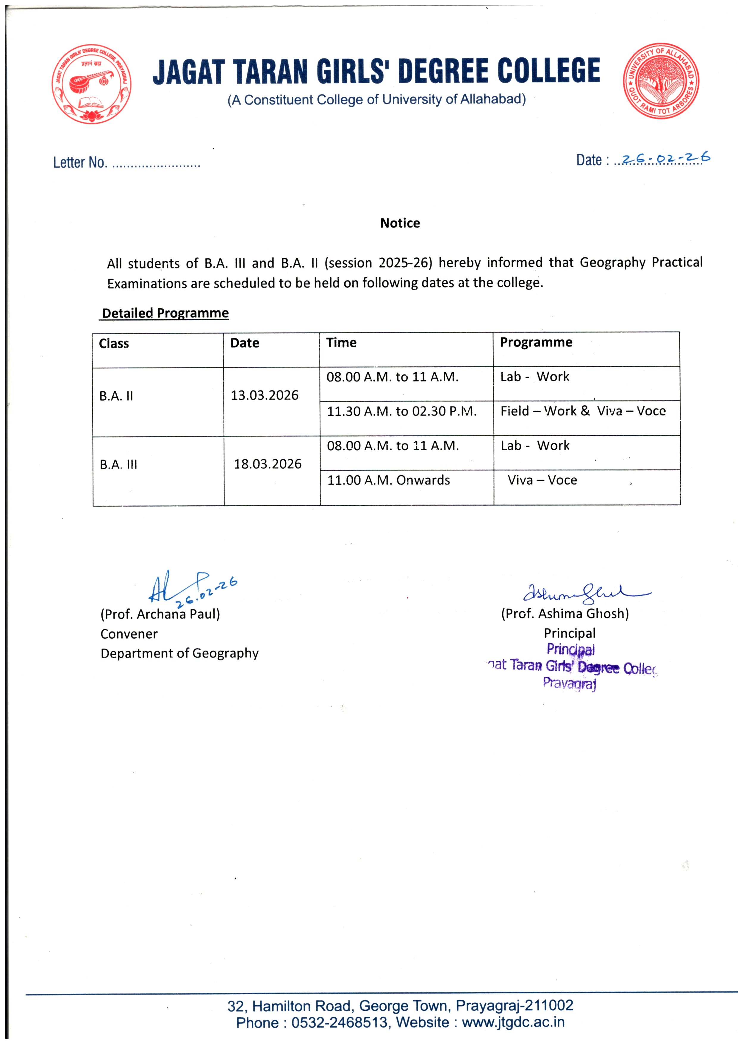 Geography Practical Examinations Scheduled of BA II & BA III Session 2025-26